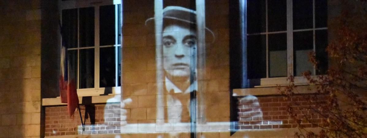 Buster Keaton derrière les barreaux œuvre projetée de Gaspard Lieb (France 3 Normandie / S. Tocco /)